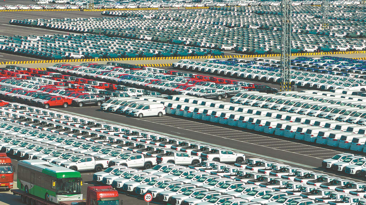 Vehicles are lined up for export in the Haitong International Automotive Terminal in Taicang Port, Jiangsu province, on Dec 1. [JI HAIXIN/FOR CHINA DAILY]