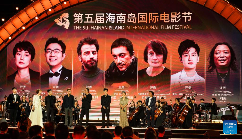 This photo taken on Dec. 16, 2023 shows the opening ceremony of the 5th Hainan Island International Film Festival in Sanya, south China's Hainan Province. The festival runs from Dec. 16 to 22. (Xinhua/Fan Yuqing)