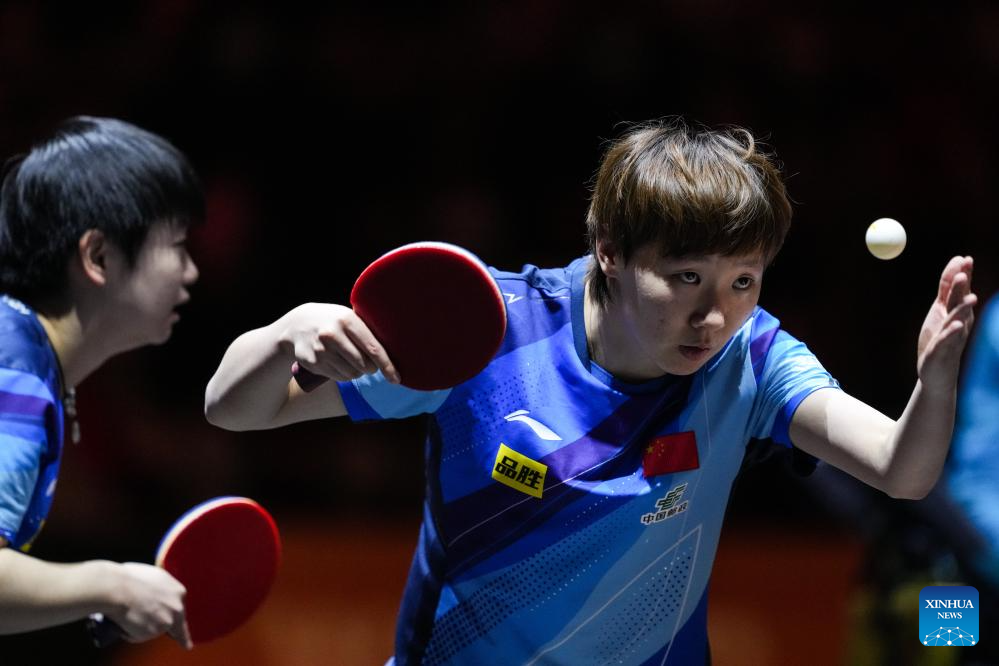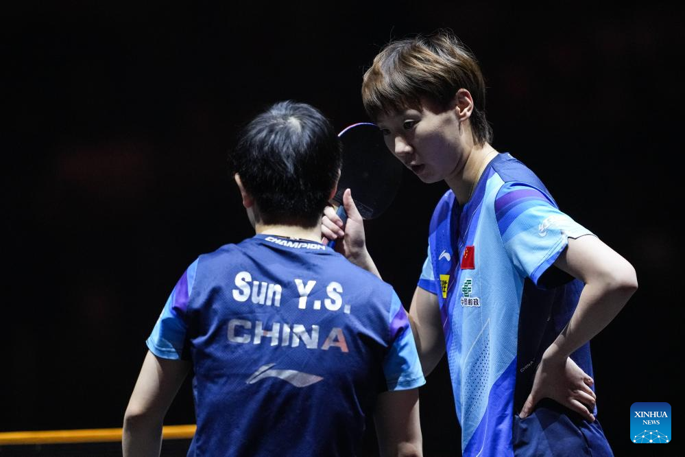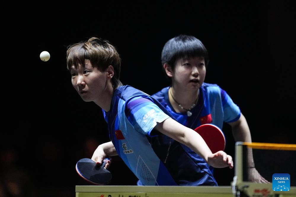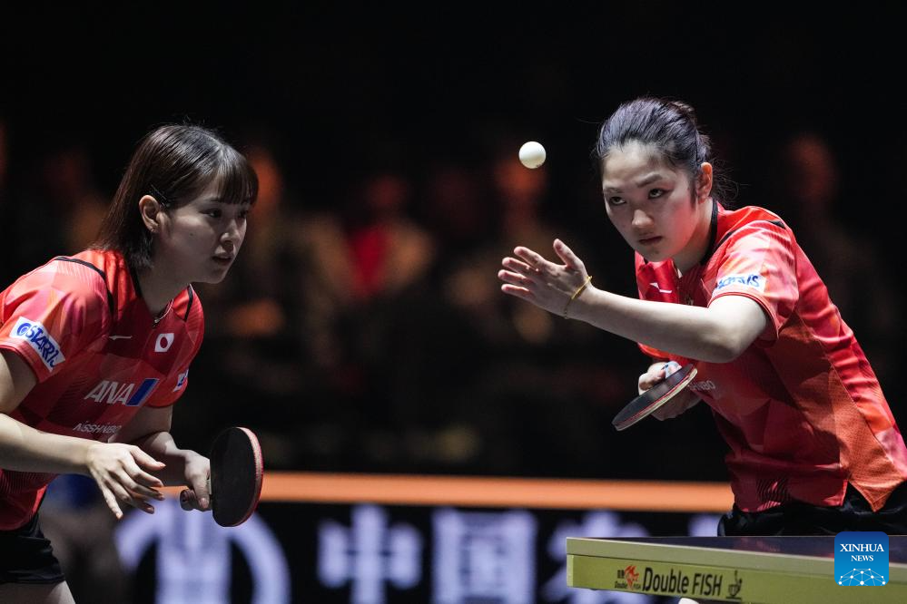 NAGOYA, Japan, Dec. 17 (Xinhua) -- World No. 1 Sun Yingsha of China won the women's singles title and teamed up with Wang Manyu to claim the women's doubles crown as well at the 2023 Women's World Table Tennis (WTT) Finals here on Sunday.
