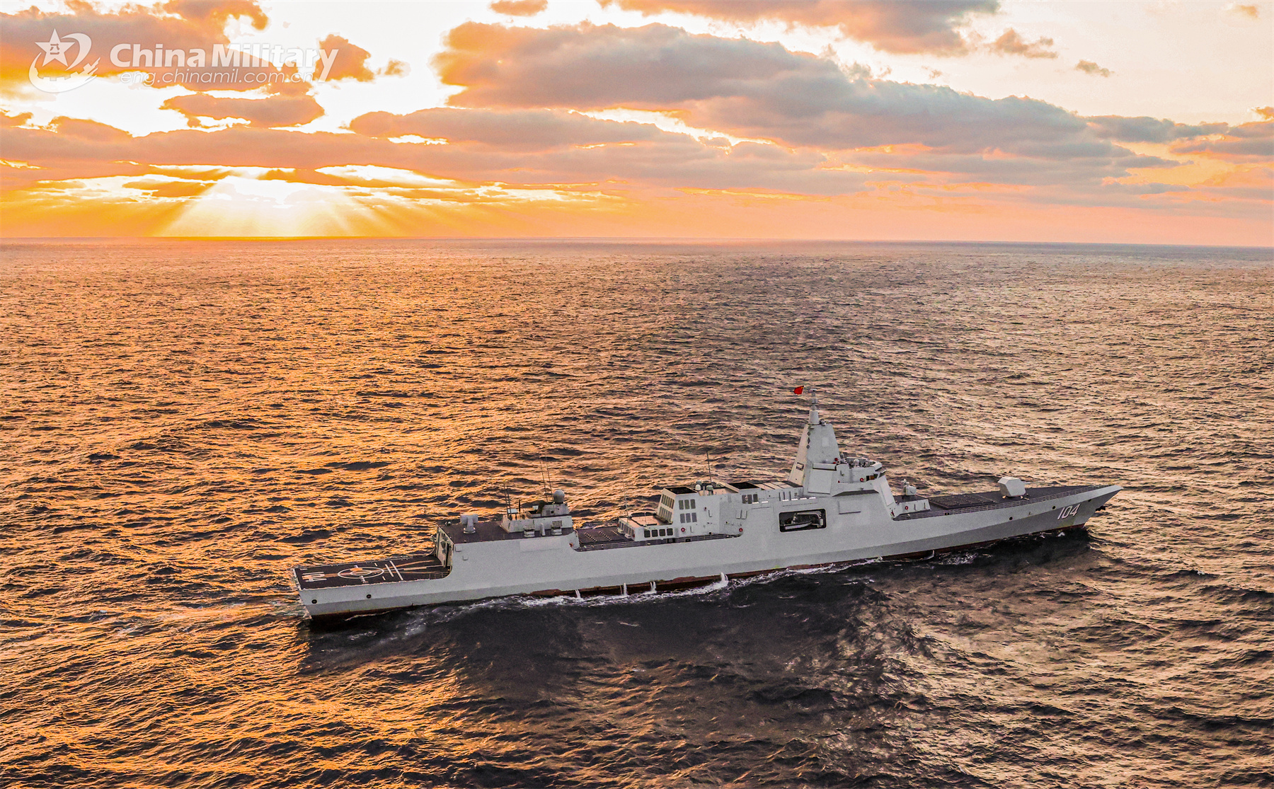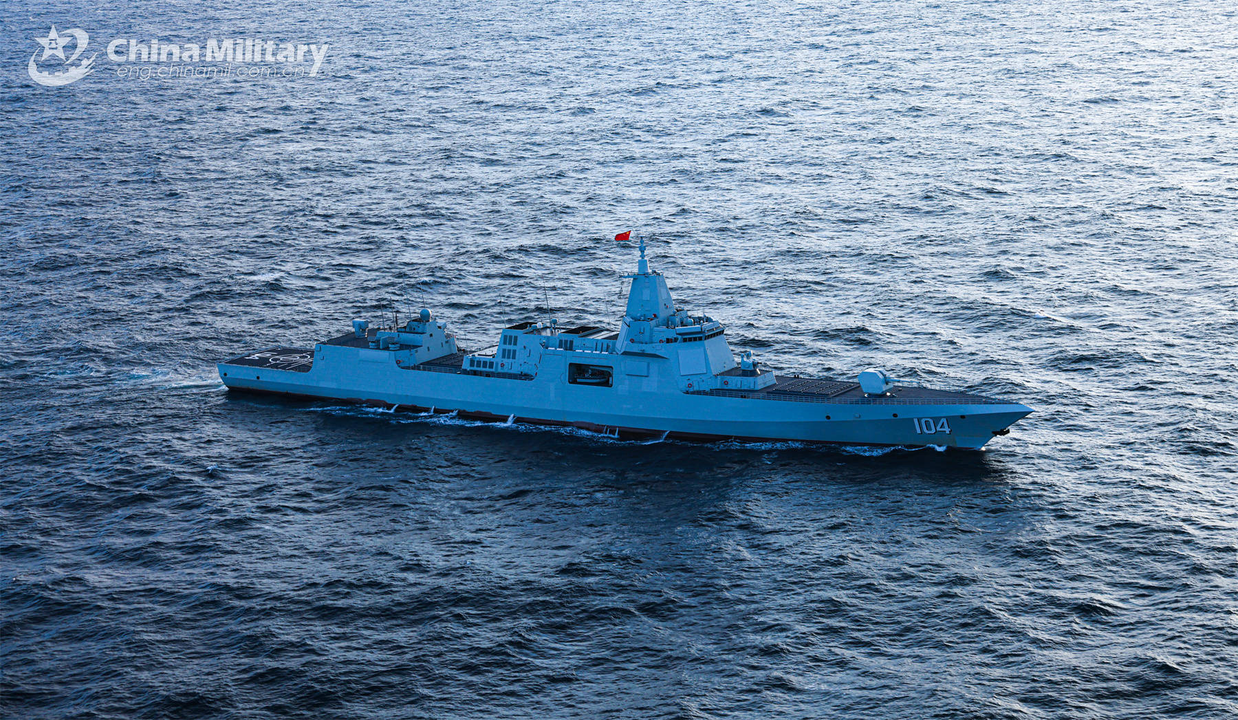 Type-055 guided-missile destroyer Wuxi attached to a unit with the navy under the PLA Northern Theater Command steams to the designated sea area during a maritime training exercise recently. (eng.chinamil.com.cn/Photo by Wang Zezhou)