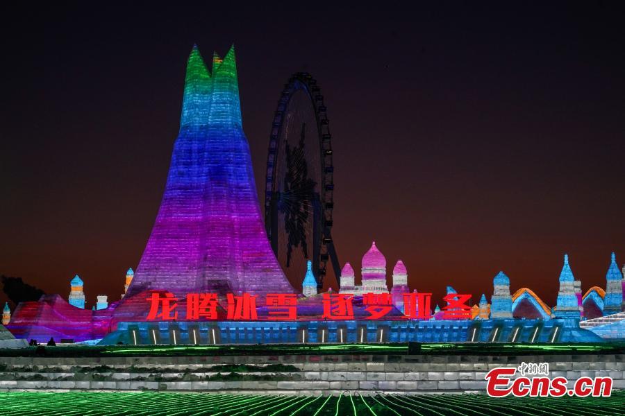 The Harbin Ice and Snow World officially opened on Monday. Covering an area of 810,000 square meters, the park requires 250,000 cubic meters of ice and snow.