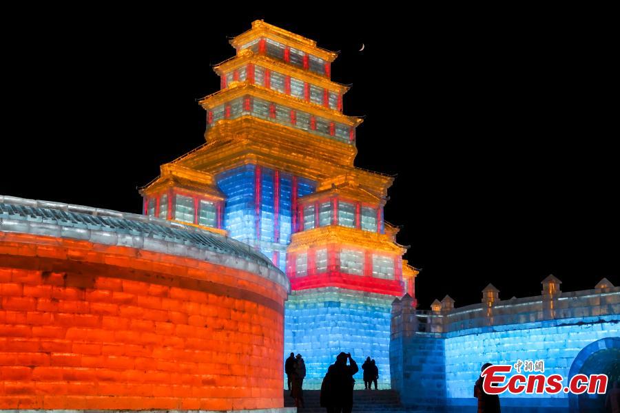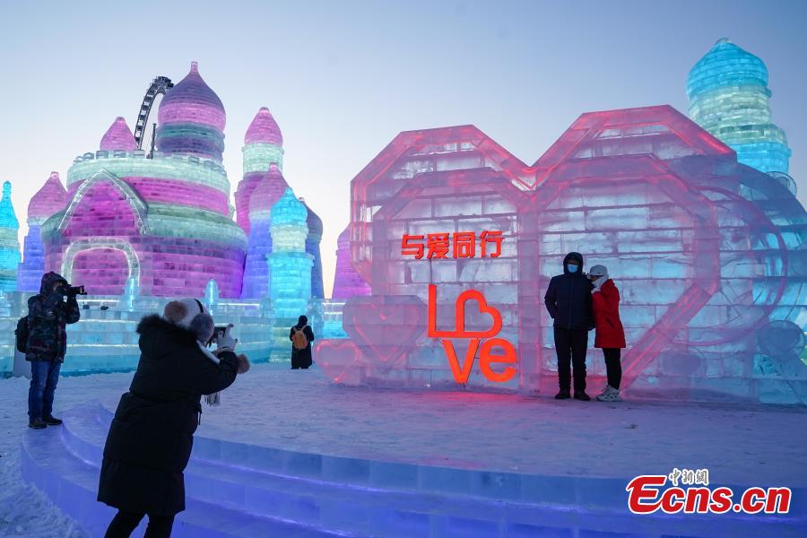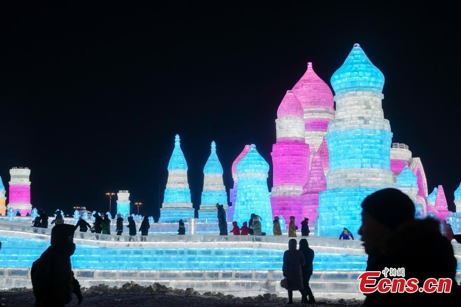 Tourists visit the Harbin Ice and Snow World, a renowned seasonal theme park opening every winter, in Harbin, northeast China's Heilongjiang Province, Dec. 17, 2023. (Photo: China News Service/Zhao Yuhang)