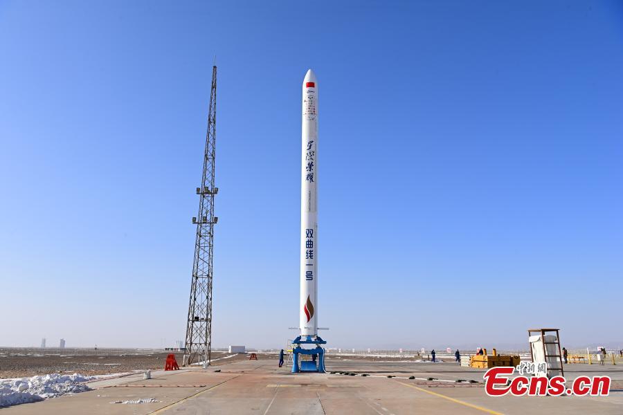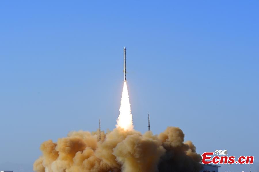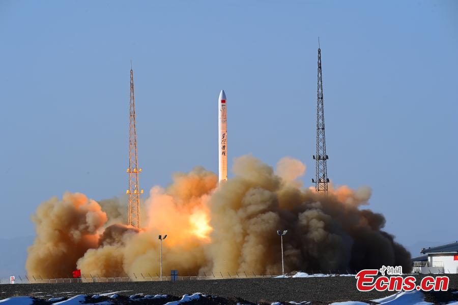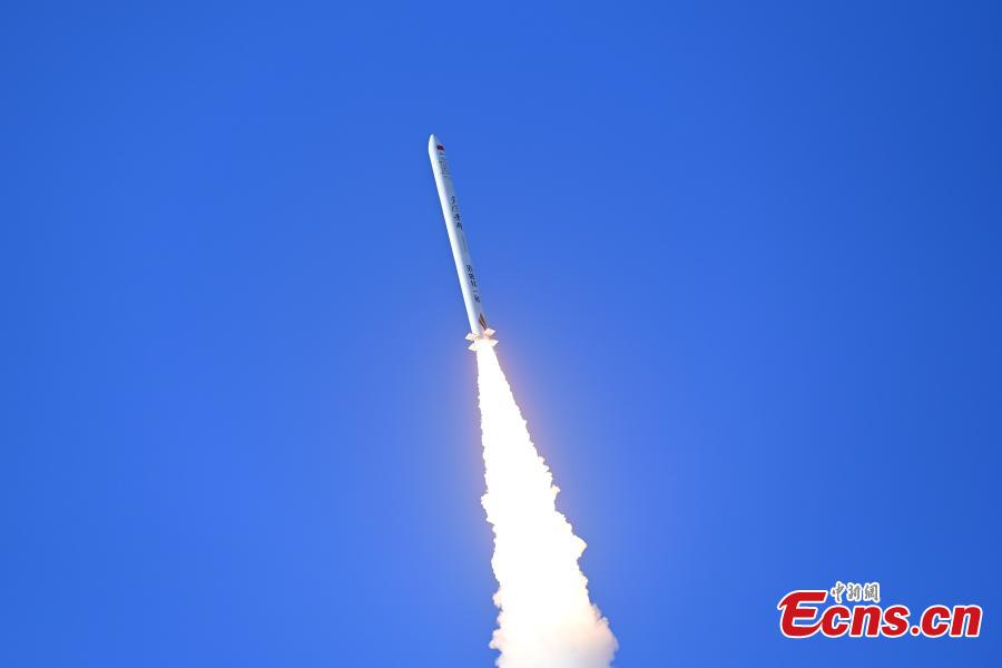 The SQX-1 commercial carrier rocket carrying the Di'er-1 satellite blasts off from the Jiuquan Satellite Launch Center in northwest China, Dec. 17, 2023. (Photo: China News Service/Wang Jiangbo)