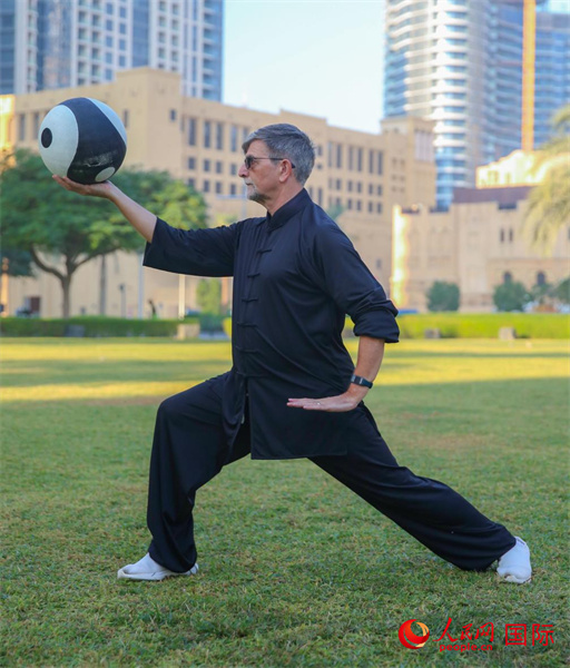 Robert, a Tai Chi enthusiast from the UK, practices Tai Chi Ball in Dubai. (People's Daily Online/Tariq Ebrahim)
