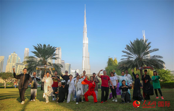 On a Sunday morning, a group of people dressed in traditional Chinese martial arts attire gathered on the lawn beneath Dubai's iconic Burj Khalifa, the world's tallest tower. Accompanied by the sounds of soothing classical music, they gracefully performed various Tai Chi movements.