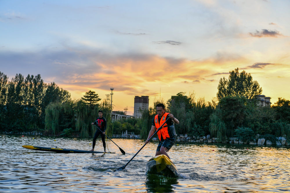 "We played paddle boarding for about three hours and it wasn't as difficult as we imagined," a netizen in Beijing wrote in a post. "The next day, my thighs were a bit sore. This tested my balance ability, and I would like to go play with my friends again."