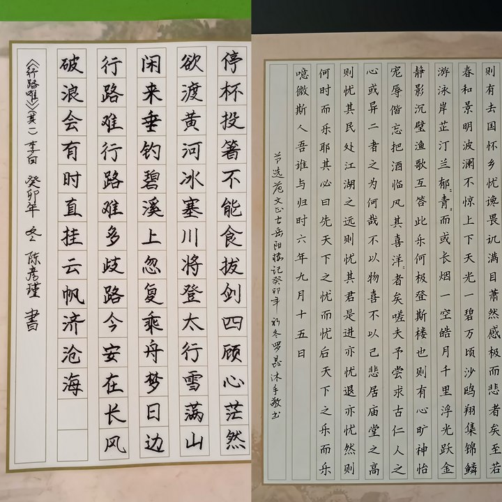 Photo shows calligraphy works by a student and a teacher of No. 3 Middle School in Huishui county, southwest China's Guizhou Province. (Photo courtesy of No. 3 Middle School in Huishui county)