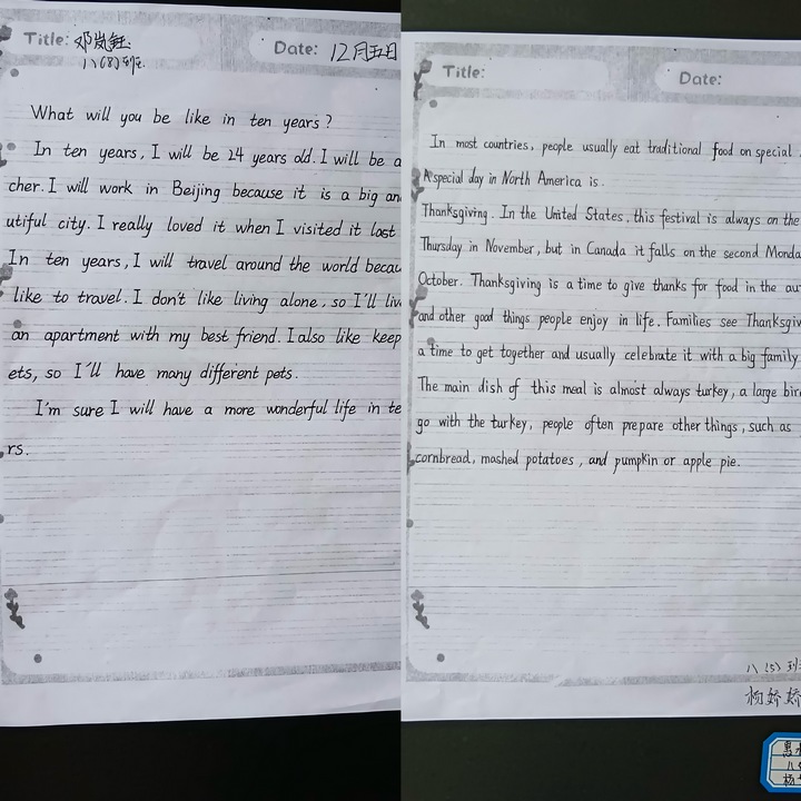 Aside from practicing Chinese calligraphy, the students also learn how to write in English. (Photo courtesy of No. 3 Middle School in Huishui county)