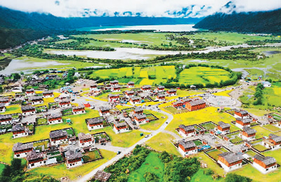 Photo shows Cuogao village located near Basum Lake, a national 5A tourist attraction, in Nyingchi city, southwest China's Xizang Autonomous Region. (Photo courtesy of the villagers' committee of Cuogao village)
