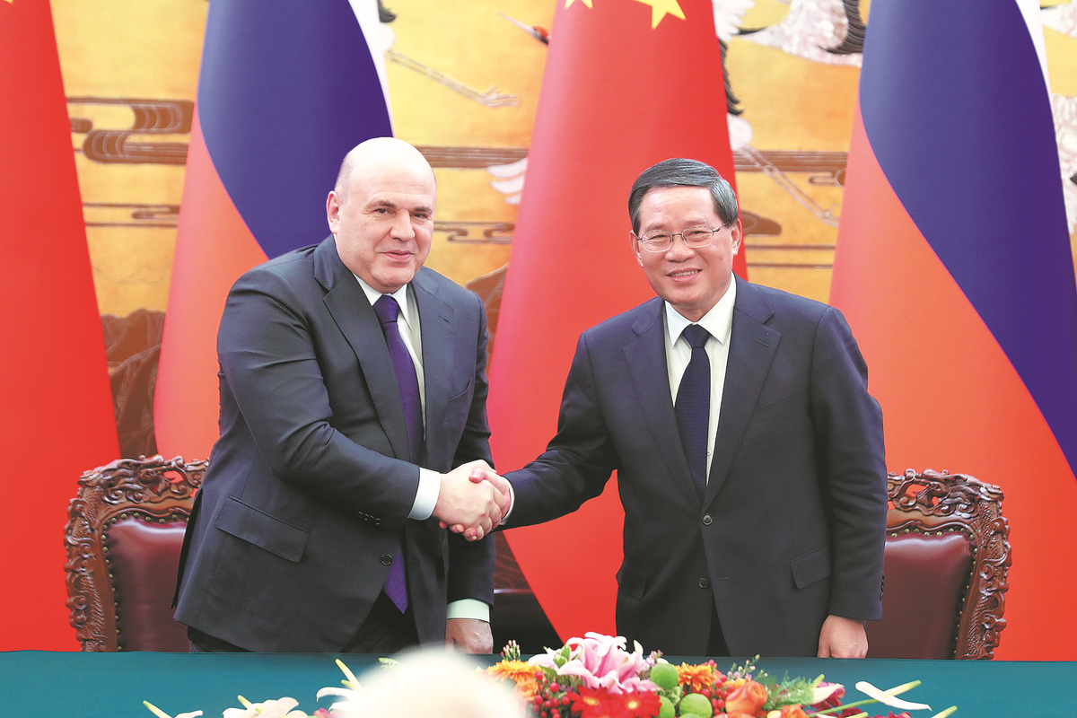 Premier Li Qiang and Russian Prime Minister Mikhail Mishustin stressed their shared commitment on Tuesday to enhancing the internal dynamics of bilateral relations and building up trade and agricultural cooperation.
