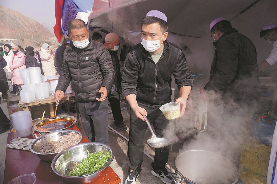 A bowl of piping hot beef noodles and a cup of drinking water at a relief camp on Tuesday offered Ma Mengke the warmth and comfort he desperately needed after a magnitude 6.2 earthquake jolted him and his family members out of sleep around midnight on Monday in Northwest China's Gansu province, and left them without a home overnight.