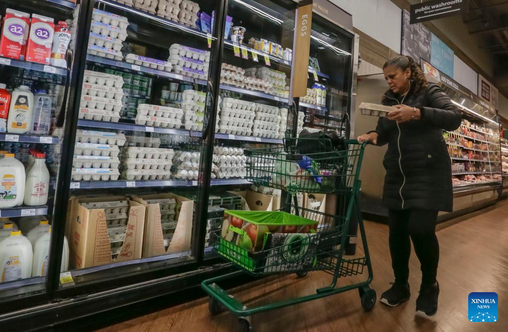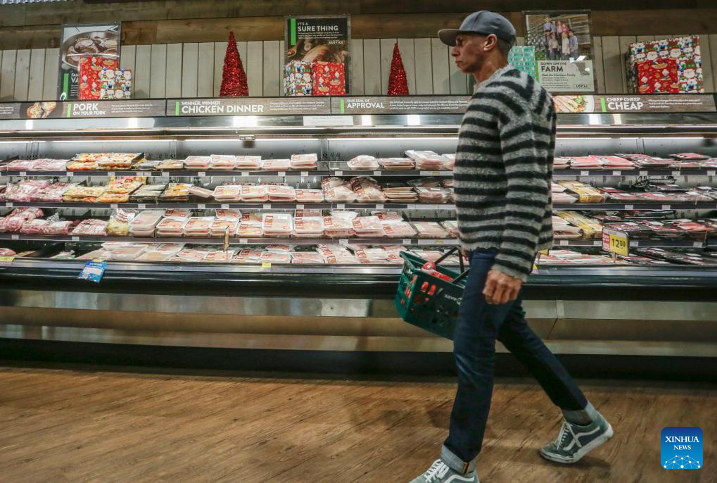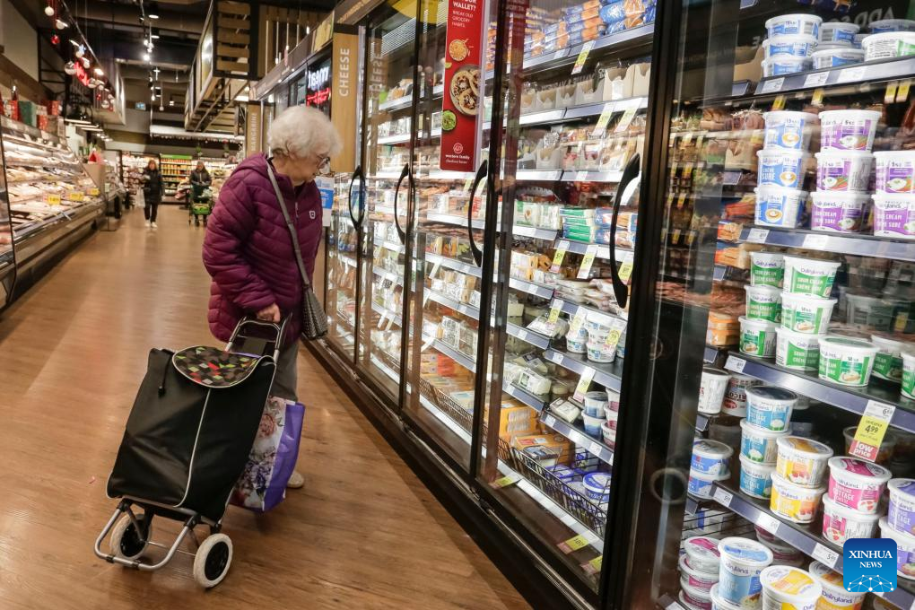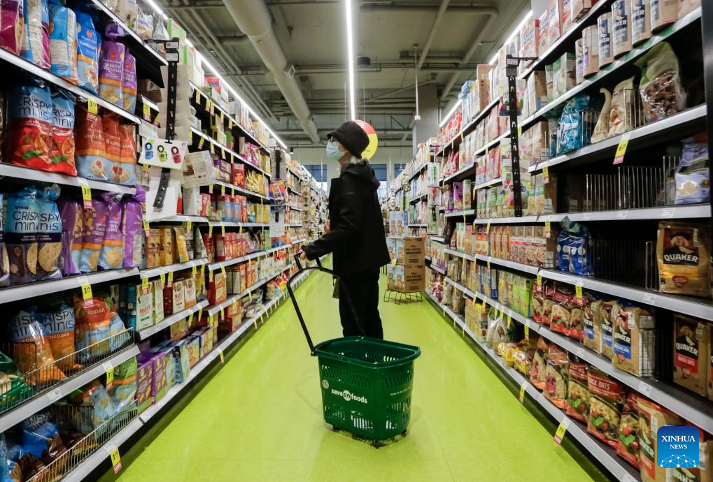 A customer shops at a grocery store in Vancouver, British Columbia, Canada, on Dec. 19, 2023. Canada's Consumer Price Index (CPI) rose 3.1 percent on a year-over-year basis in November, matching the same rate in October, Statistics Canada said on Tuesday. (Photo by Liang Sen/Xinhua)