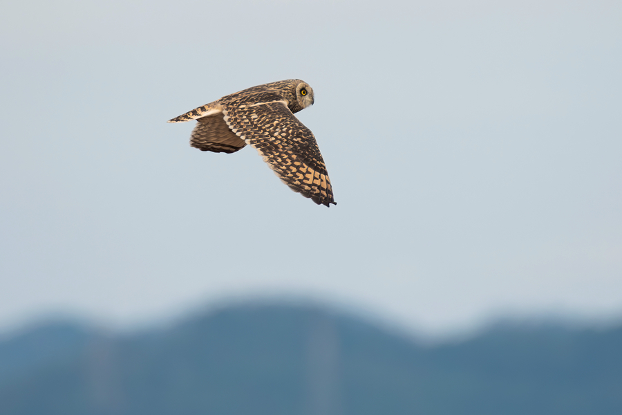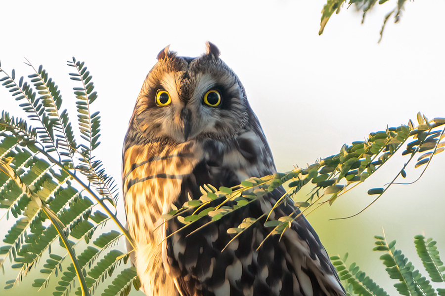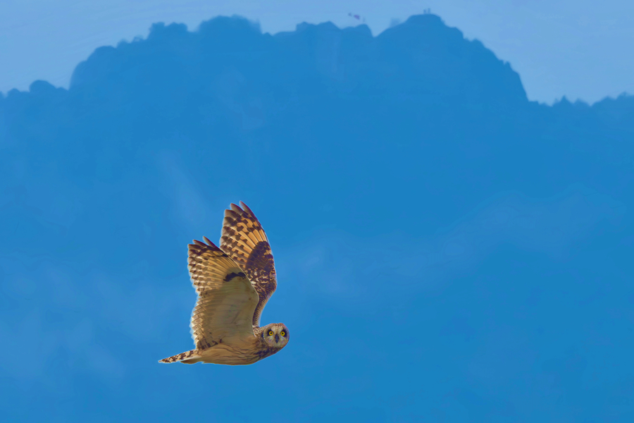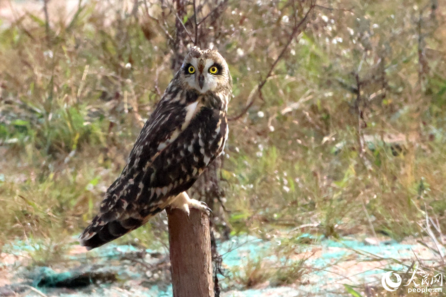 Photo shows a short-eared owl in Xiamen, southeast China's Fujian Province. (People's Daily Online/Chen Bo)