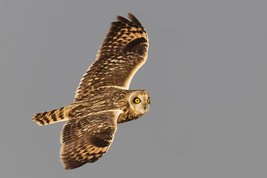 Photo shows a short-eared owl in Xiamen, southeast China's Fujian Province. (Photo/Zhou Longjie)