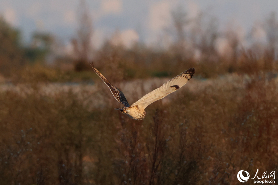 A flock of short-eared owls was recently spotted in Maluan Bay Wetland in Xiamen, southeast China's Fujian Province, attracting many nature enthusiasts and bird lovers to observe these birds.