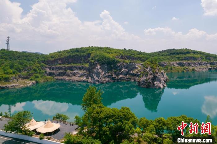 The Deep Blue Coffeehouse, located on an abandoned mine in Hongmiao village of the county, boasts of a spectacular view of a blue lake.
