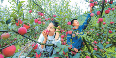 People harvest apples in Hanyuan county, Ya'an city, southwest China's Sichuan Province. (Photo/Song Haoxin, Hao Liyi)