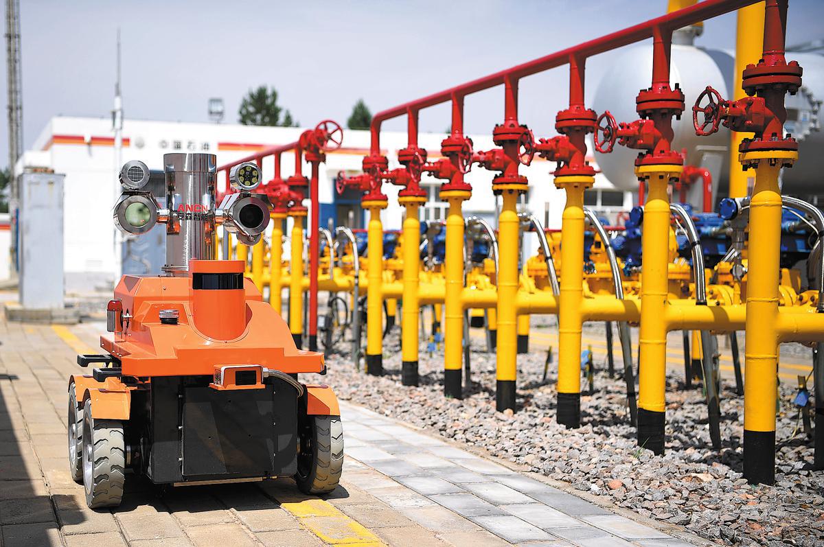 An inspection robot oversees Changqing oilfield in July. WANG PENG/XINHUA