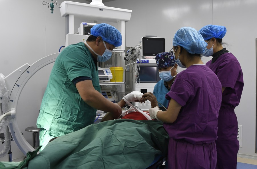 A person injured during an earthquake receives treatment at the People's Hospital of Jishishan County, northwest China's Gansu Province, Dec. 19, 2023. (Photo by Shi Youdong/Xinhua)