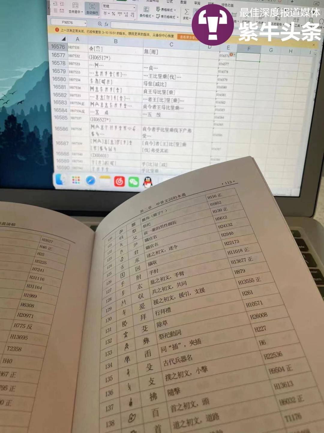 Li Ying, who goes by Li Youxi on social media, uses a book of oracle bone inscriptions to find topics for her short videos. (yangtse.com/Photo courtesy of the interviewee)