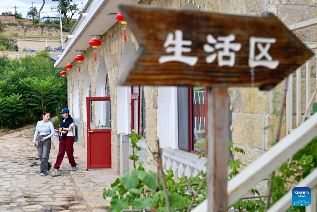 Tourists are seen at a homestay in Laoniuwan, a border area between Qingshuihe County of north China's Inner Mongolia Autonomous Region and Pianguan County of north China's Shanxi Province, Aug. 26, 2023. In recent years, Laoniuwan Town in Qingshuihe County has taken advantage of the unique geographic location of Laoniuwan area, which is situated at the confluence of the Great Wall and the Yellow River, and vigorously supported tourism industry by developing entertainment projects to attract more visitors. (Xinhua/Liu Jinhai)