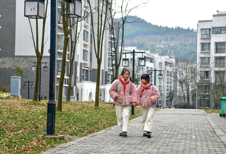 ANSHUN, Dec. 24 (Xinhua) -- Five years ago, six-year-old Ji Xue and her family of Miao ethnic group started a new life. Thanks to the poverty alleviation efforts, they were relocated to a new home from inhospitable mountainous and remote area.