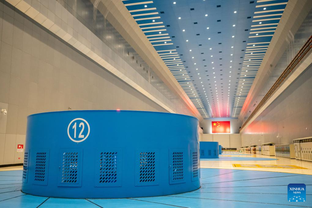 This photo taken on Dec. 22, 2023 shows a unit of the Wudongde hydropower station in operation on the border of Sichuan and Yunnan provinces in southwest China. Wudongde hydropower station is a major national project to implement China's west-to-east power transmission program. (Xinhua/Hu Chao)