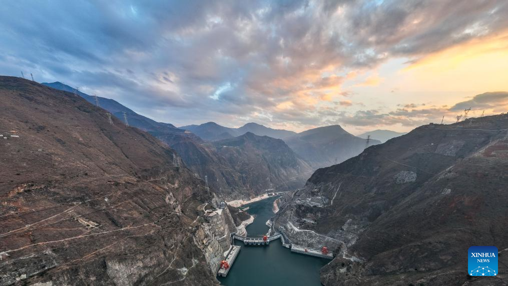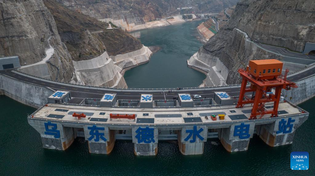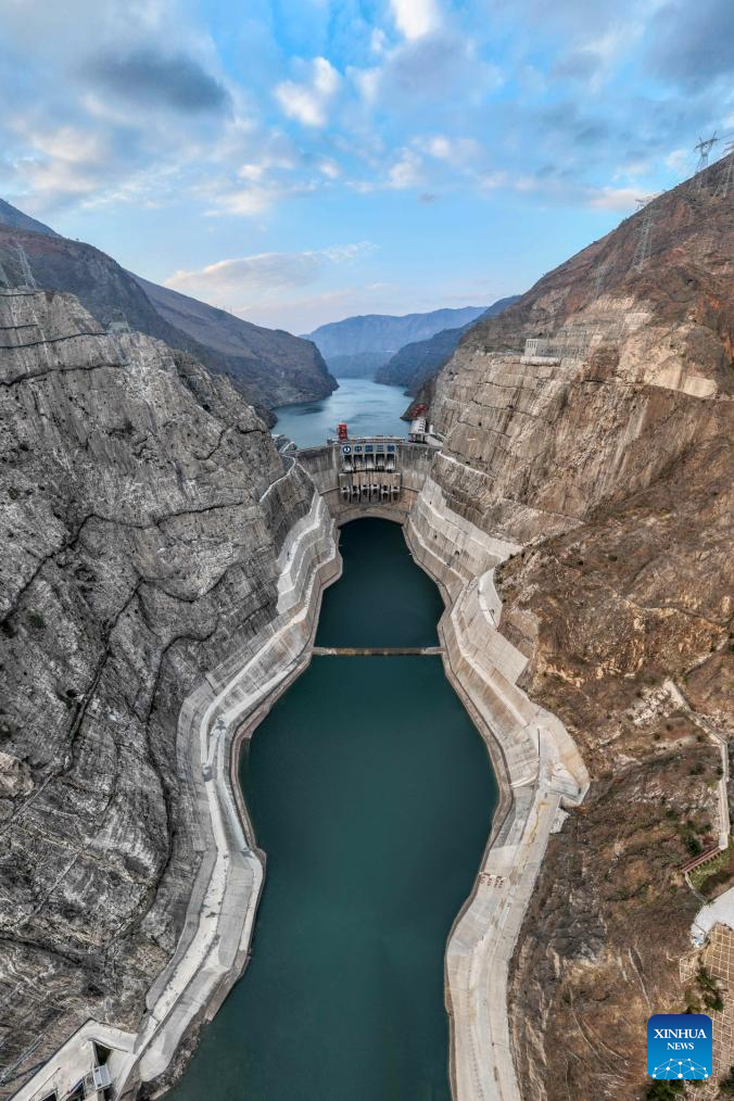 This aerial photo taken on Dec. 22, 2023 shows the Wudongde hydropower station on the border of Sichuan and Yunnan provinces in southwest China. Wudongde hydropower station is a major national project to implement China's west-to-east power transmission program. (Xinhua/Hu Chao)