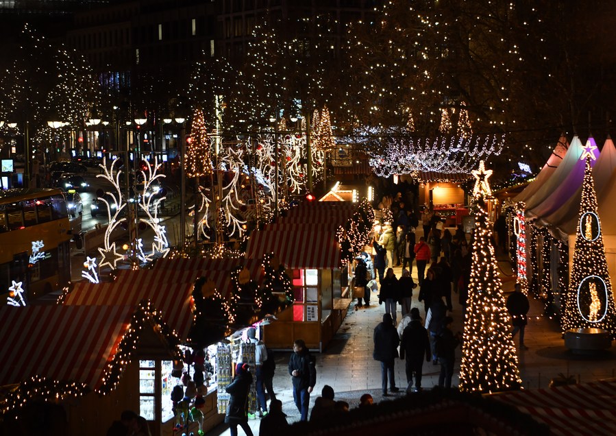 People visit a Christmas fair in Berlin, Germany, Dec. 20, 2023. (Xinhua/Ren Pengfei)