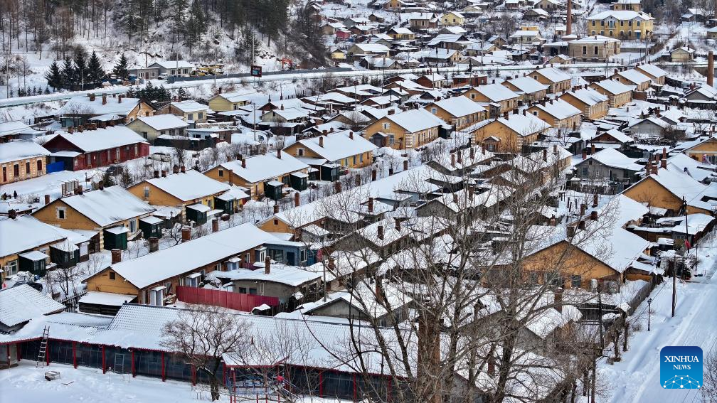 This aerial photo taken on Dec. 2, 2023 shows the scenery of Hengdaohezi Town in Hailin City, northeast China's Heilongjiang Province. (Photo by Fan Junchen/Xinhua)