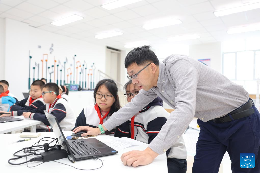 Teacher Yang Lei gives a computer programming lecture at a school of the Xinjiang Production and Construction Corps in northwest China's Xinjiang Uygur Autonomous Region, Dec. 19, 2023. Practical and specific measures are being taken to ensure local people's well-being in the ongoing national program that rallies all-round support for Xinjiang, and the Xinjiang Production and Construction Corps is one of the many examples. (Xinhua/Hu Huhu)