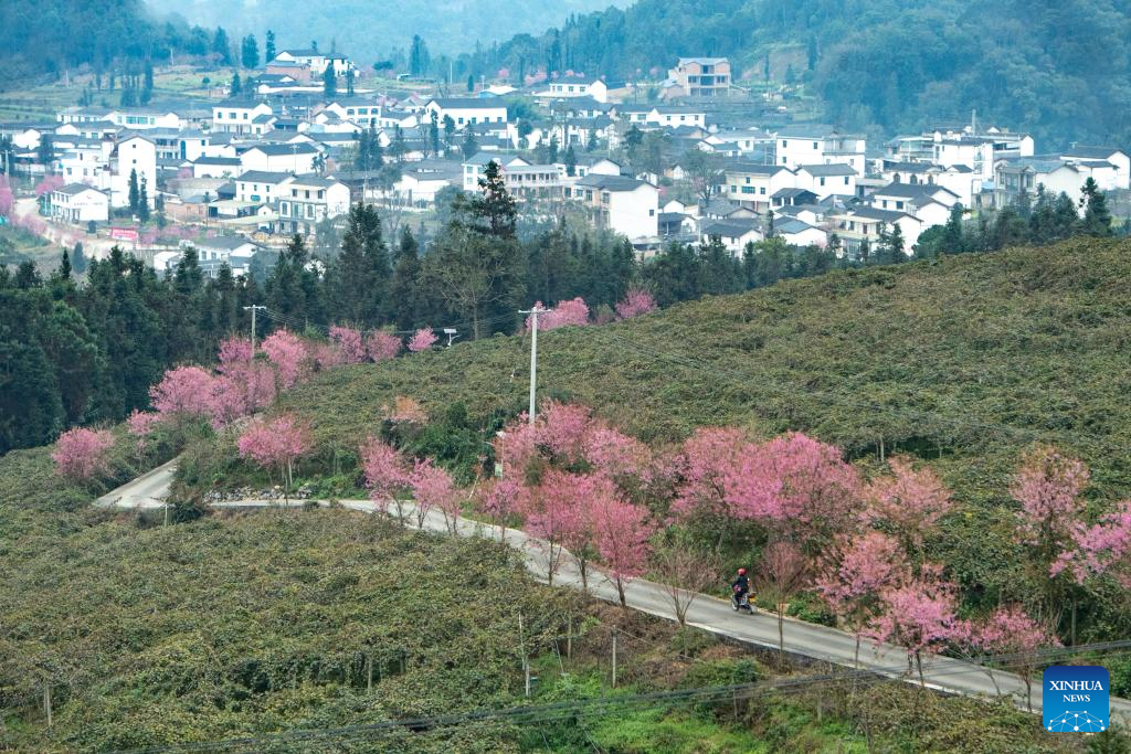 This photo taken on Dec. 24, 2023 shows winter cherry blossoms in Xichou County, southwest China's Yunnan Province. (Photo by Xiong Pingxiang/Xinhua)
