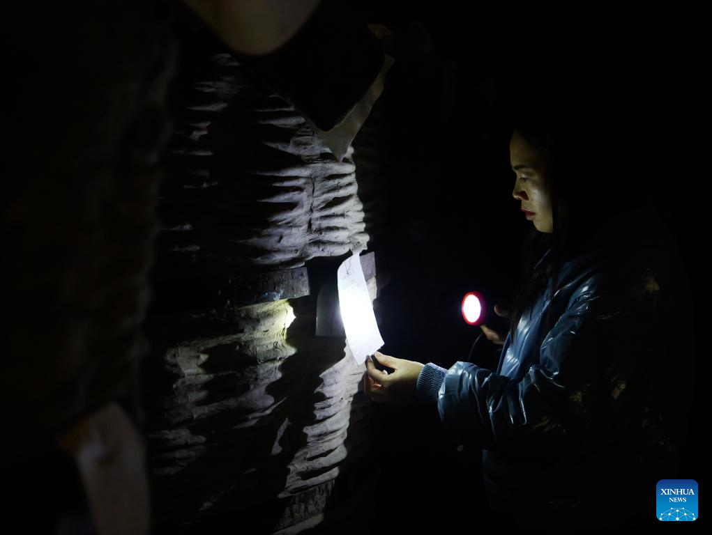 A worker checks the preservation condition of liquor in Baofeng Baijiu Co., LTD in Baofeng County, central China's Henan Province, Dec. 21, 2023. (Xinhua/Li Jianan)