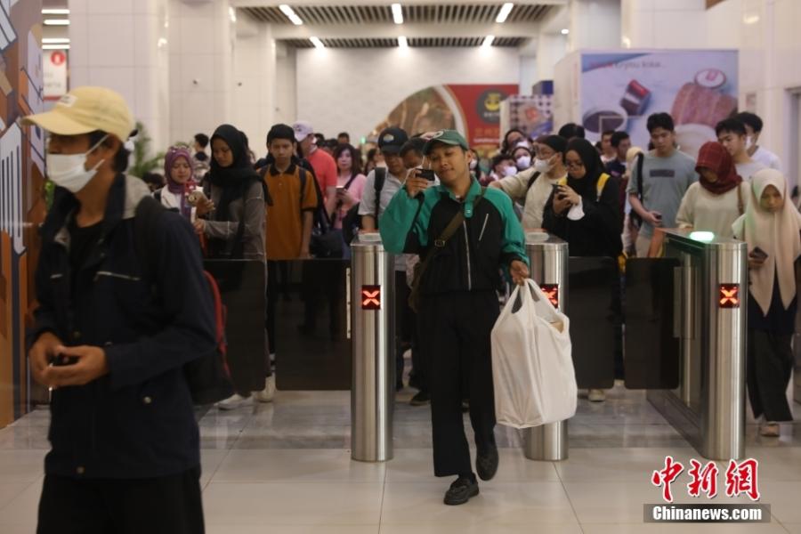 Passengers check in by swiping their tickets at Halim Station in Jakarta, Indonesia, Dec. 25, 2023. (Photo: China News Service/Li Zhiquan)