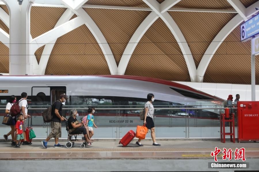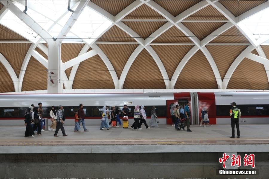Passengers pose for photos at Halim Station in Jakarta, Indonesia, Dec. 25, 2023. (Photo: China News Service/Li Zhiquan)
