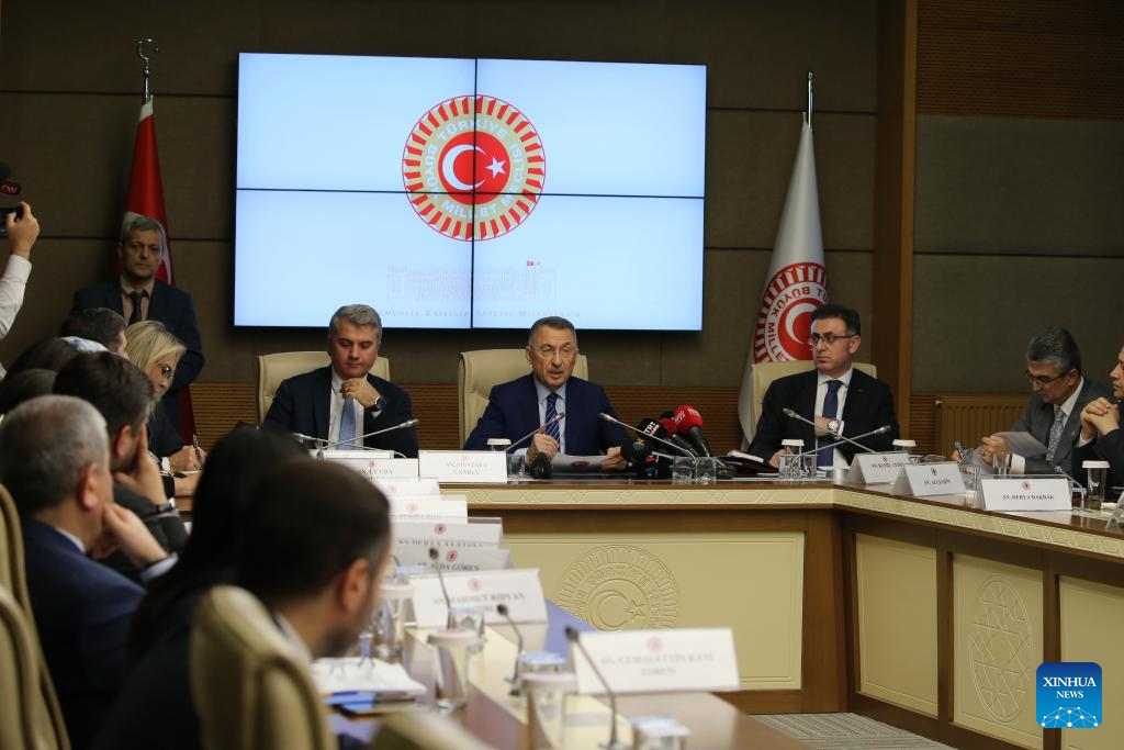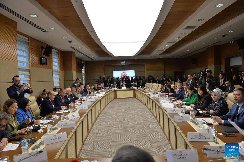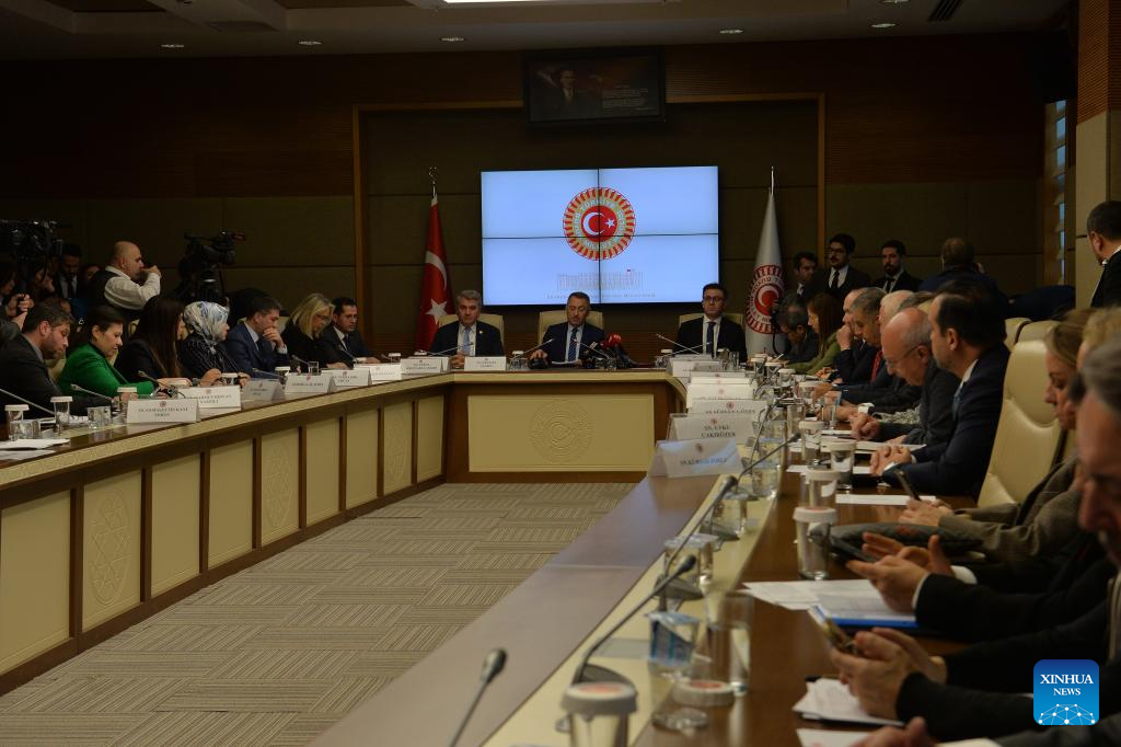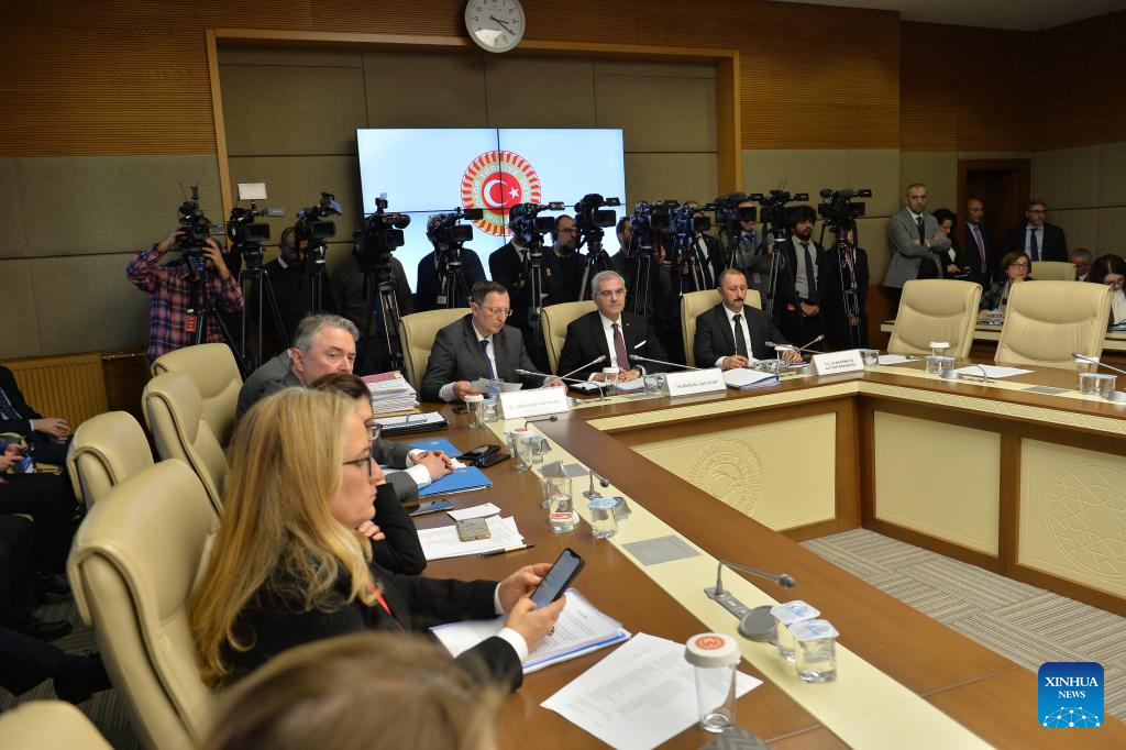 Members of the Turkish parliament's foreign affairs committee attend a meeting on Sweden's NATO bid in Ankara, Türkiye, on Dec. 26, 2023. The Turkish parliament's foreign affairs committee on Tuesday approved Sweden's NATO bid following deliberation, a first step necessary for putting it to a full parliament vote. (Photo by Mustafa Kaya/Xinhua)