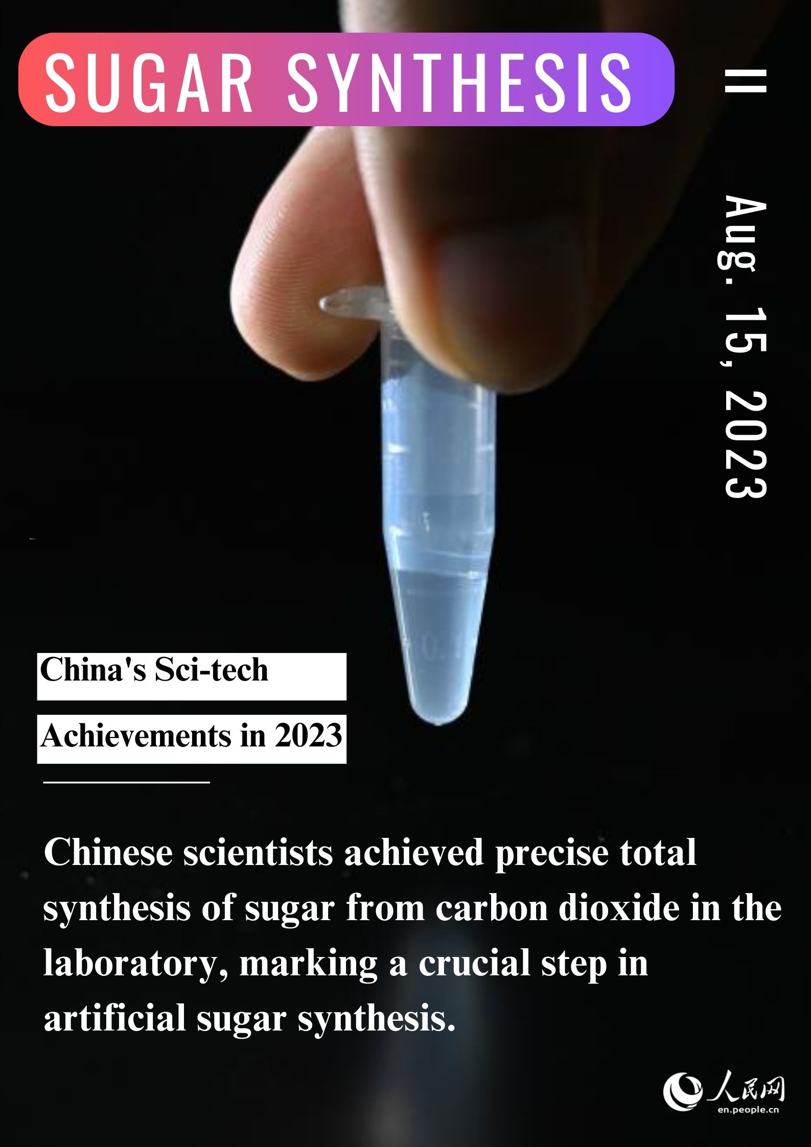 Chinese scientists achieved precise total synthesis of sugar from carbon dioxide in the laboratory, marking a crucial step in artificial sugar synthesis.
