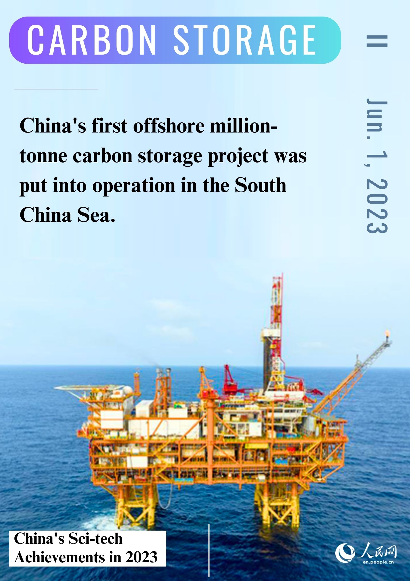 China's first offshore carbon storage project was put into operation on June 1, 2023, in the South China Sea.