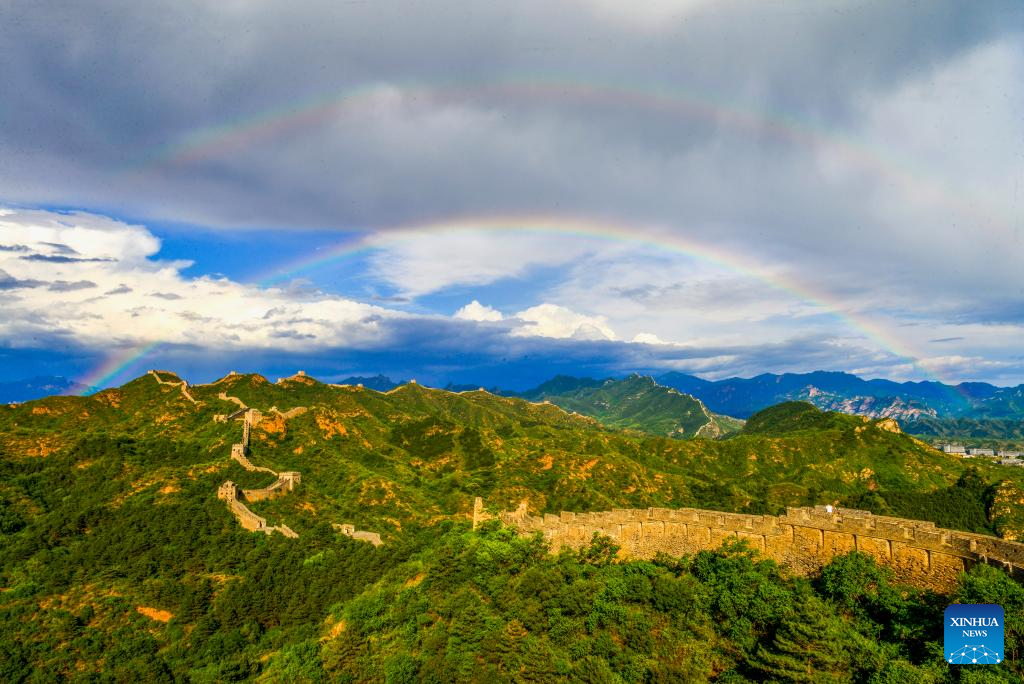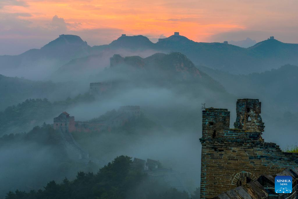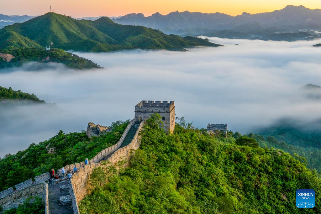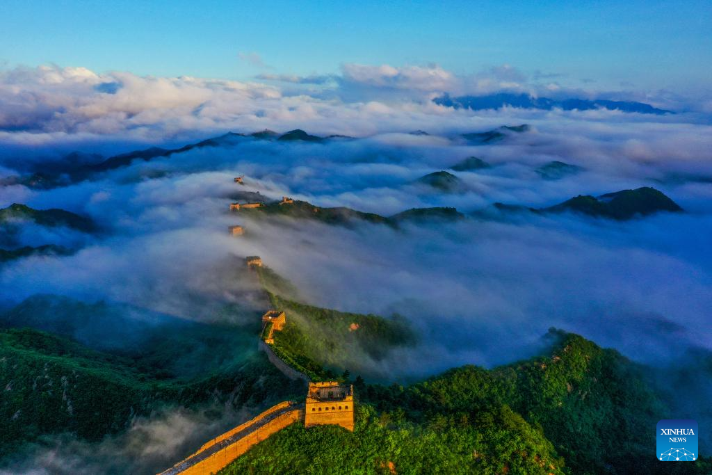 This photo taken on July 7, 2023 shows the summer scenery at the Jinshanling section of the Great Wall in Luanping County, north China's Hebei Province. With the change of the four seasons, the Jinshanling section of the Great Wall puts on different layers of colors and shows magnificent beauty. (Photo by Zhou Wanping/Xinhua)