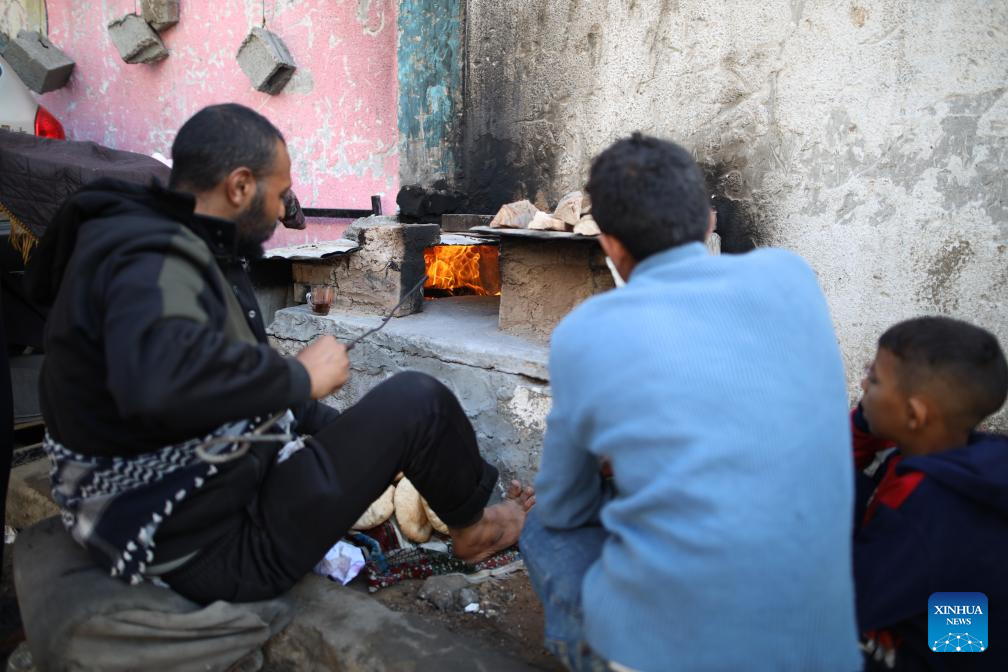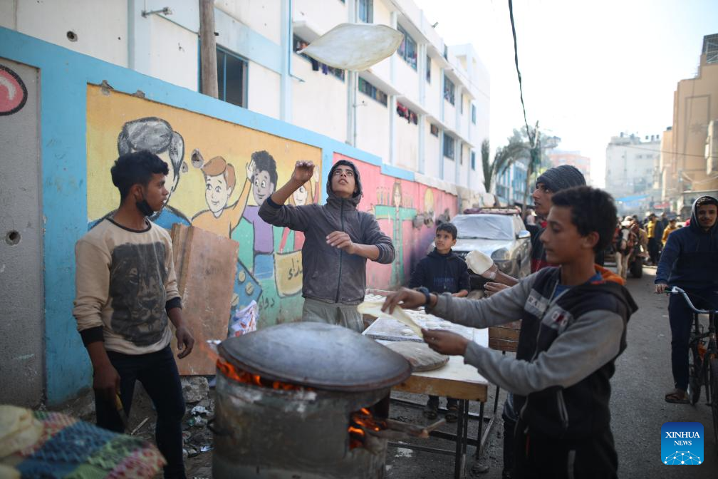 People make bread at Nuseirat Refugee Camp, central Gaza Strip, on Dec. 26, 2023. During the past 24 hours, 195 people were killed while 325 were injured and transported to hospitals in the Gaza Strip due to Israeli attacks, said the Gaza Health Ministry. (Xinhua)