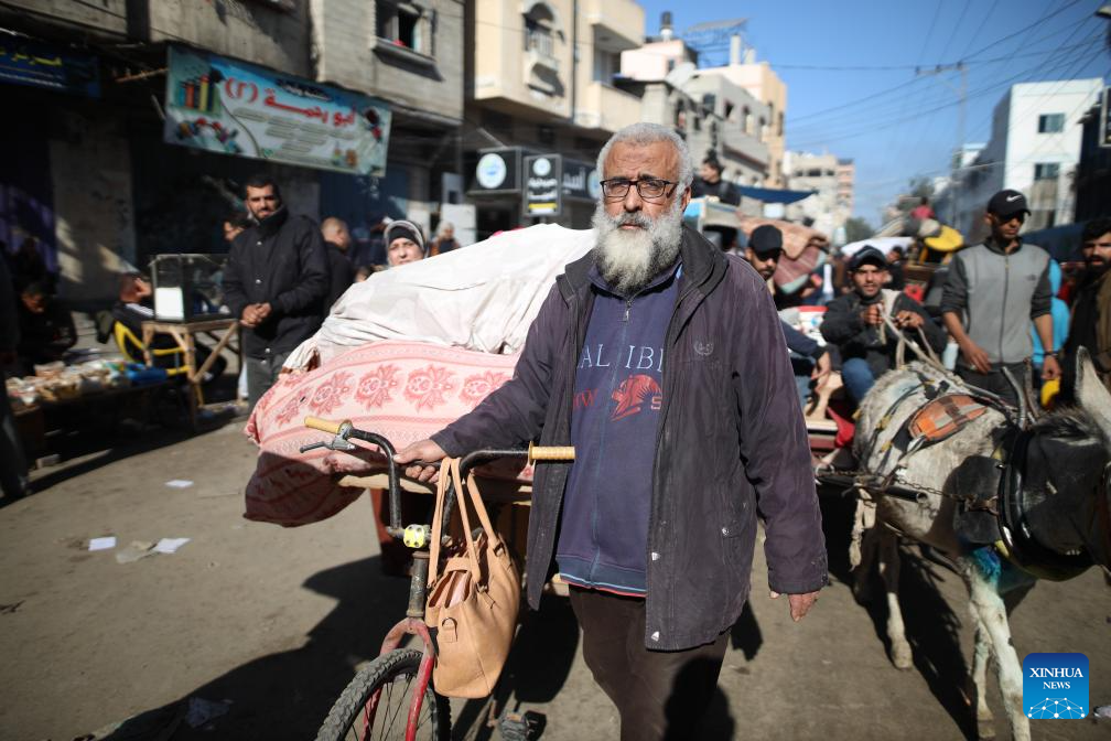 People flee from their homes at Nuseirat Refugee Camp, central Gaza Strip, on Dec. 26, 2023. During the past 24 hours, 195 people were killed while 325 were injured and transported to hospitals in the Gaza Strip due to Israeli attacks, said the Gaza Health Ministry. (Xinhua)