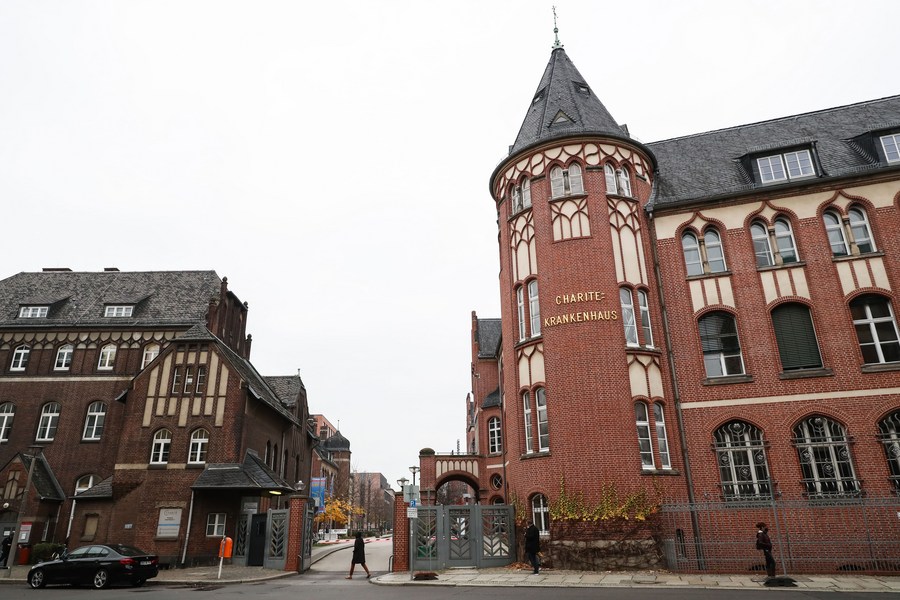 Photo taken on Nov. 25, 2021 shows an entrance of the Charite University Hospital in Berlin, Germany. (Xinhua/Shan Yuqi)