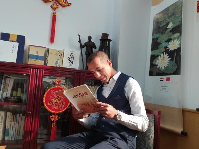 Abbas El-Said reads a Chinese book. (Photo provided by the interviewee)