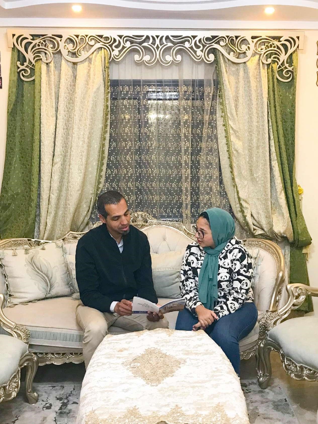 Abbas El-Said teaches his niece Chinese, who is admitted to the Chinese Department of Cairo University this year. (People's Daily/Huang Peizhao)