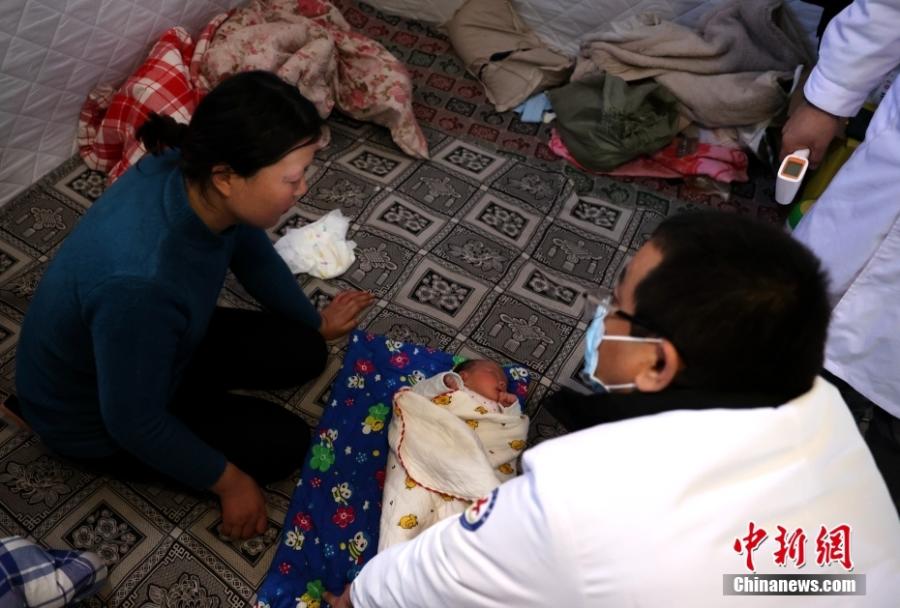 A doctor makes check-up for a newborn baby in quake-hit Haidong City, northwest China's Qinghai Province, Dec. 27, 2023. (Photo: China News Service/Xue Di)