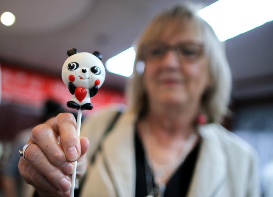 A participant shows a dough figurine of giant panda during the "Cultural China, Splendid Sichuan" event in Auckland, New Zealand, Nov. 29, 2023. (Photo by Zhao Gang/Xinhua)