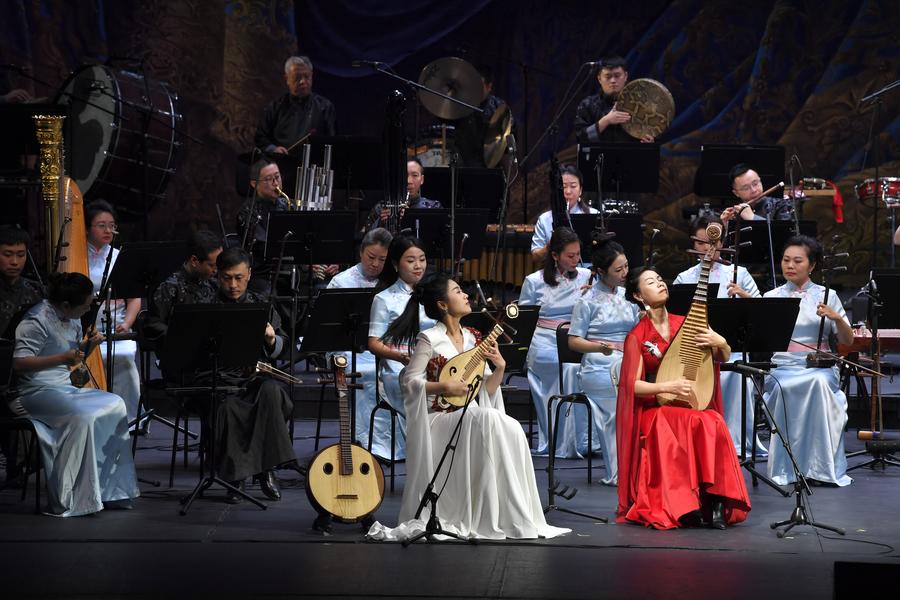 Chinese artists perform folk orchestral music as part of the Chinese Cultural Festival in Russia, in Moscow, Russia, Nov. 13, 2023. (Photo by Alexander Zemlianichenko Jr/Xinhua)