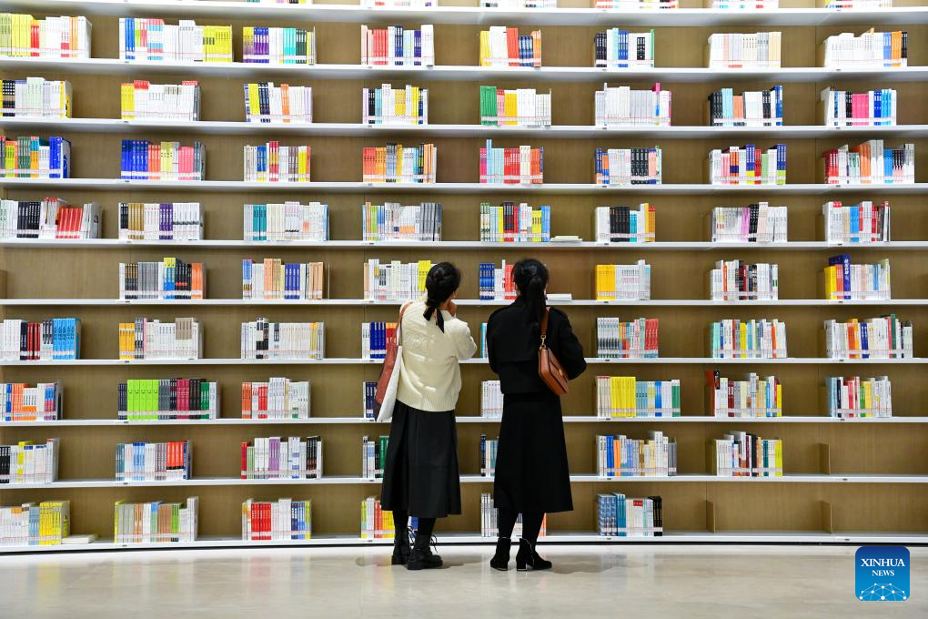 People visit the north hall of Shenzhen Library in Shenzhen, south China's Guangdong Province, Dec. 28, 2023. Located in Longhua District of the city, the north hall of Shenzhen Library officially opened on Thursday. With a building area of about 72,000 square meters, the hall is designed to stock 8 million books and provides 2,500 seats. (Xinhua/Liang Xu)