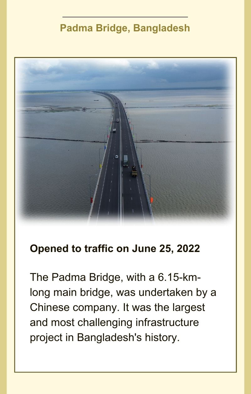 The Padma Bridge, with a 6.15-km-long main bridge, was undertaken by a Chinese company. It was the largest and most challenging infrastructure project in Bangladesh's history.