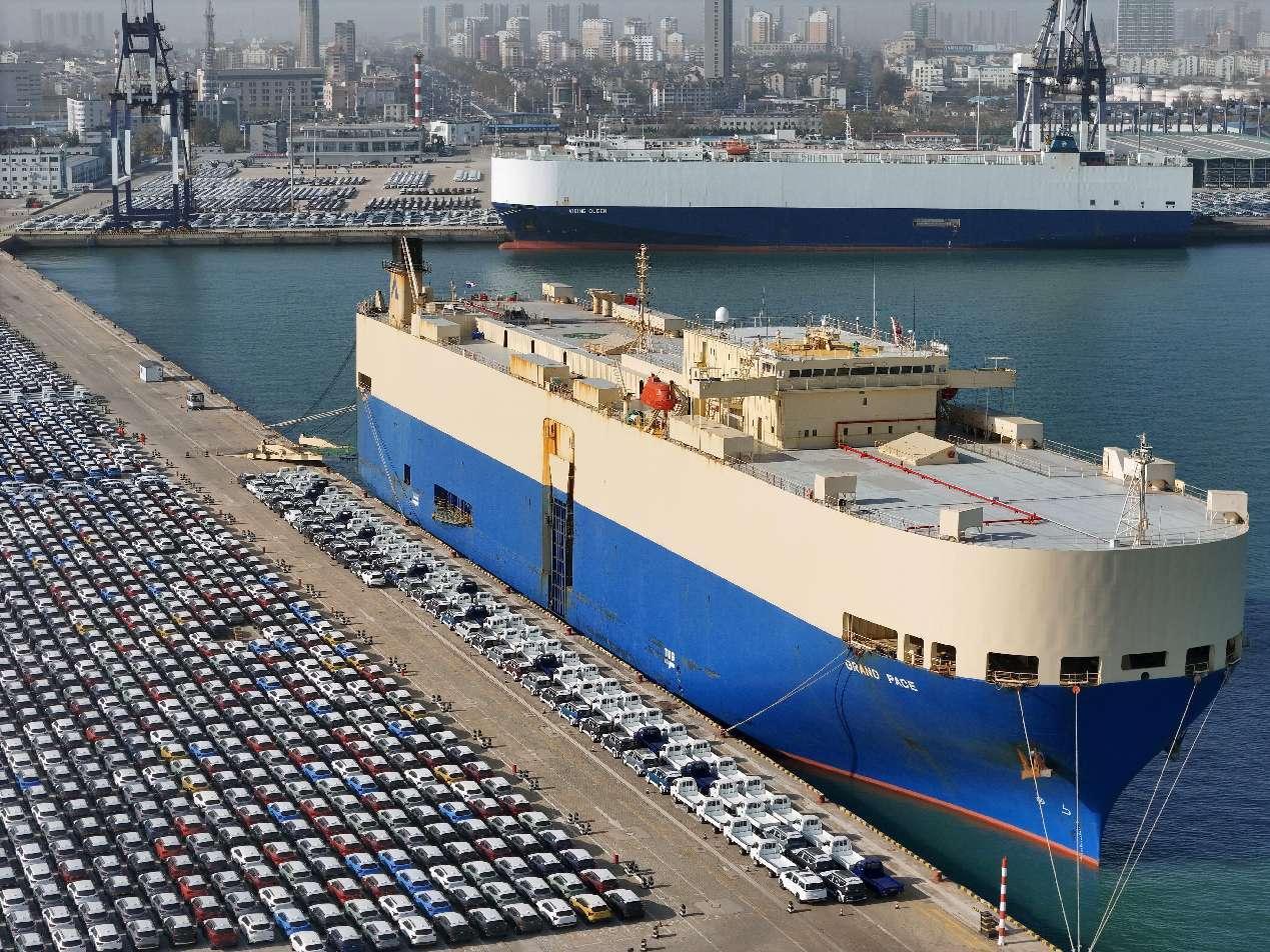 China-manufactured vehicles are about to be shipped overseas at the Yantai port, east China's Shandong province. (Photo by Tang Ke/People's Daily Online)